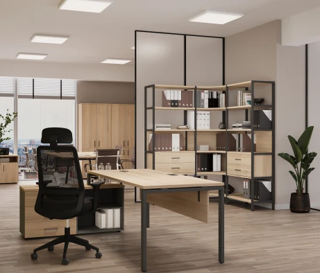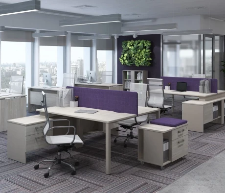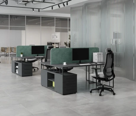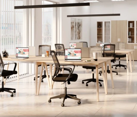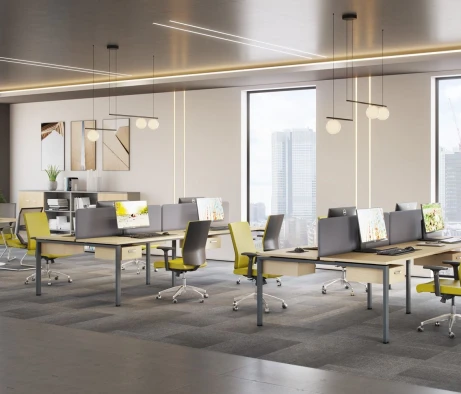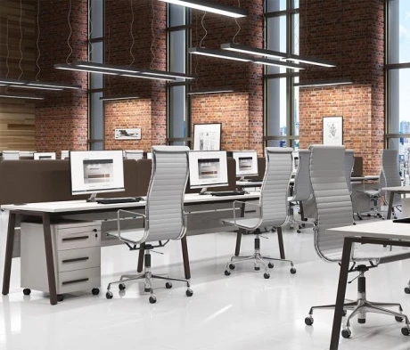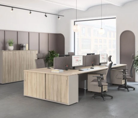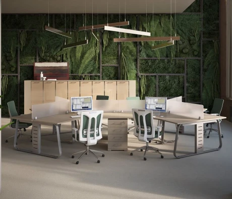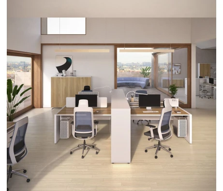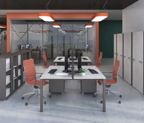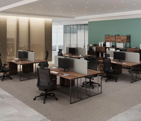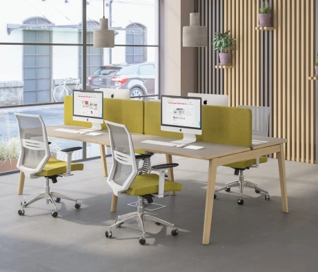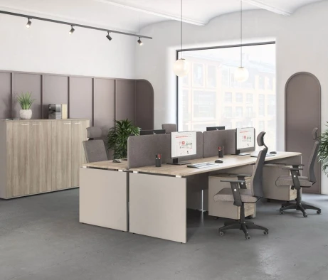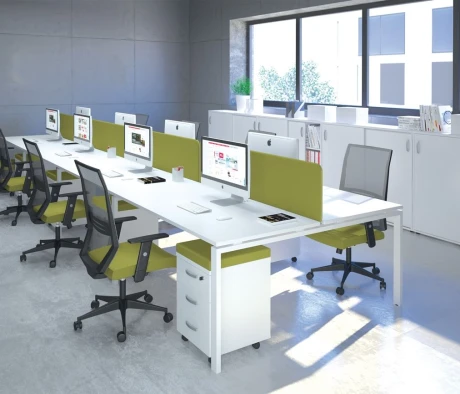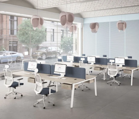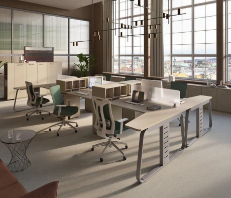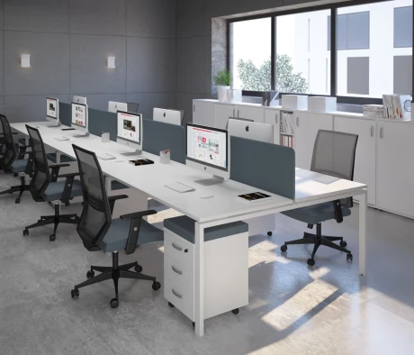 Я в своём офисе уже давно использую бенч-системы, отдельные столы это прошлый век. Мне это кажется очень стильным и это здорово экономит пространство. В офисе все смотрится модно, прогрессивно, как мне нравится.