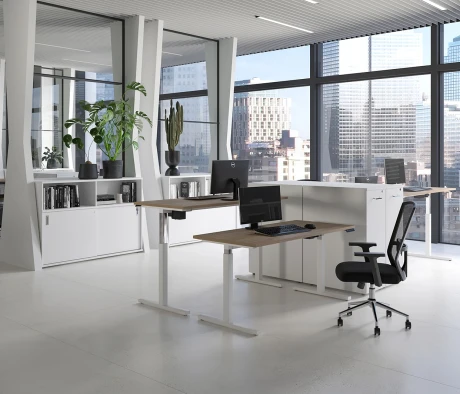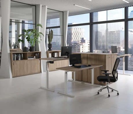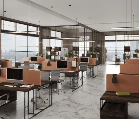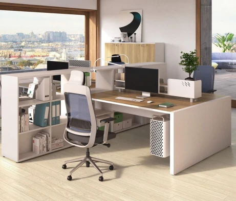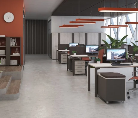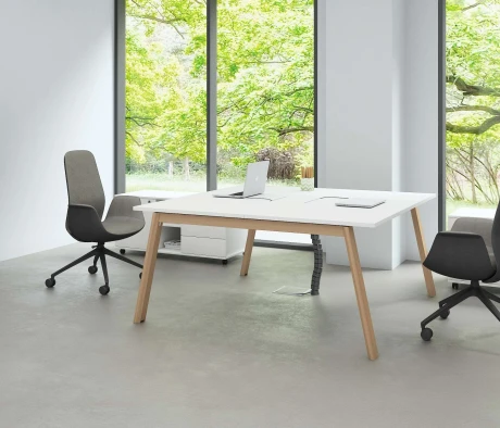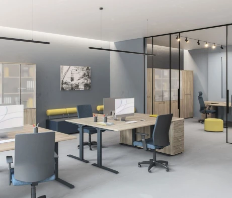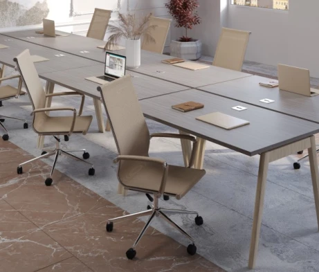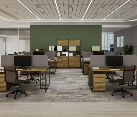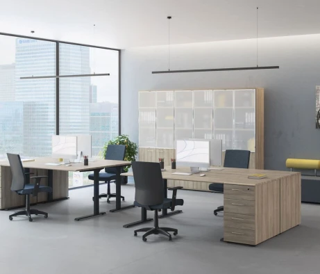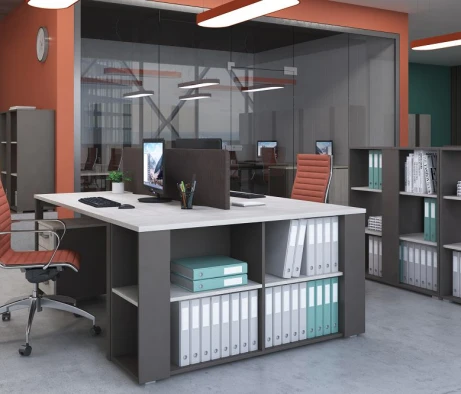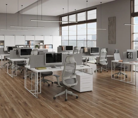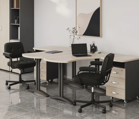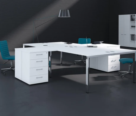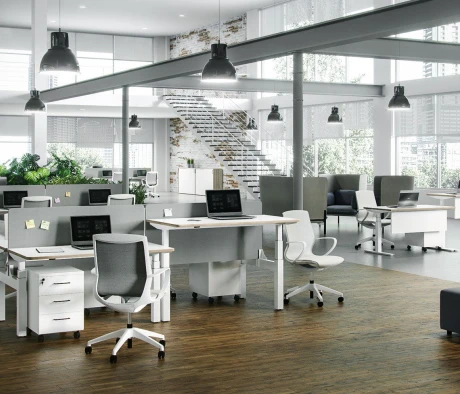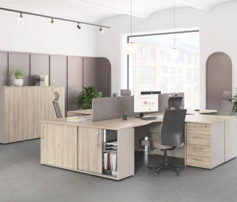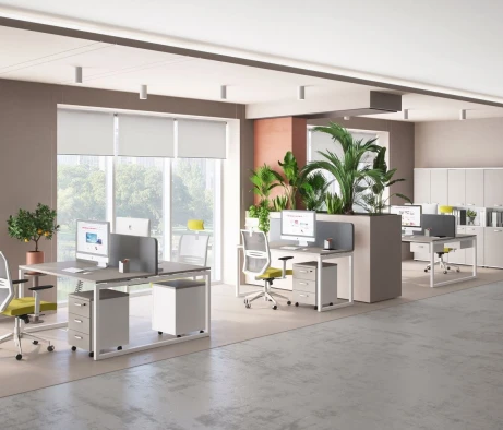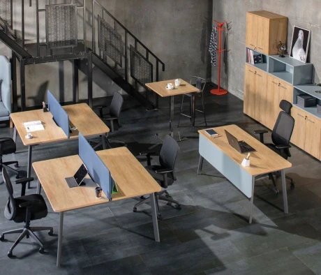 Я в своём офисе уже давно использую бенч-системы, отдельные столы это прошлый век. Мне это кажется очень стильным и это здорово экономит пространство. В офисе все смотрится модно, прогрессивно, как мне нравится.