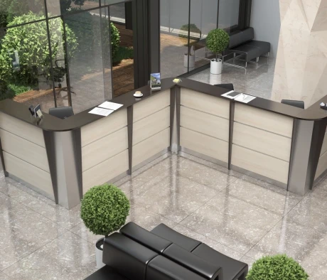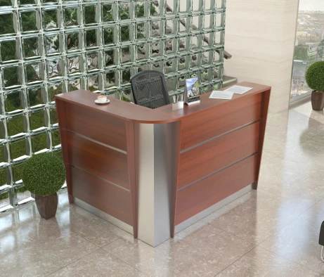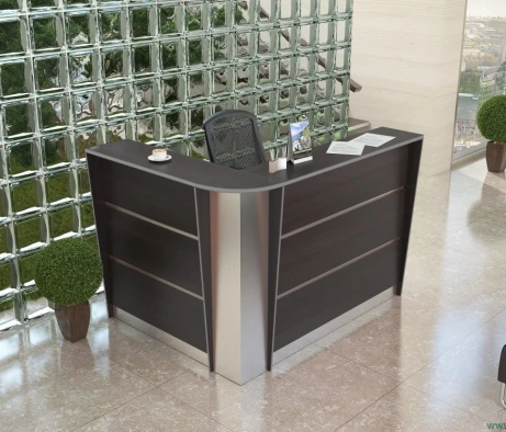 Необходимо было оснастить большой конференц-зал, кабинет директора и ресепшн мебелью в похожем стиле и цветах, но из разных ценовых категорий. Также поставлена задача подобрать соответствующие по цветам и размерам операционные тумбы и тумбы для оргтехники в оборудованные ранее кабинеты сотрудников. Важное условие заказчика – традиционный классический стиль мебели и темные цвета в деревянной фактуре.