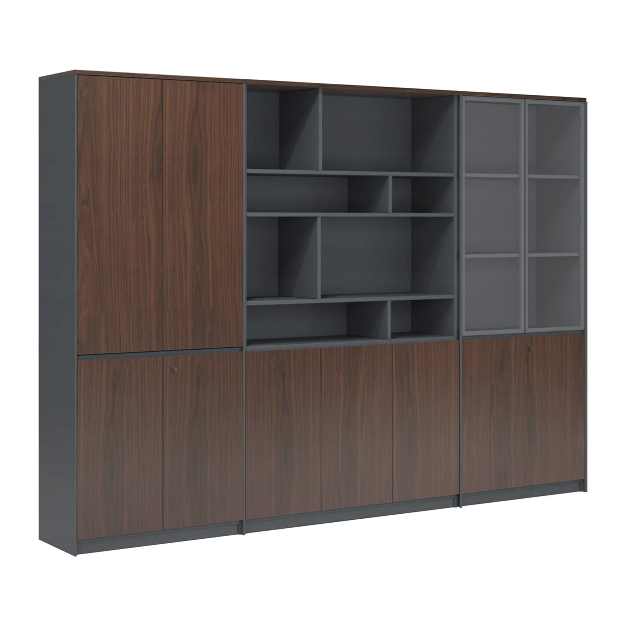 Двери: шпон; тонированное стекло в алюминиевой рамке