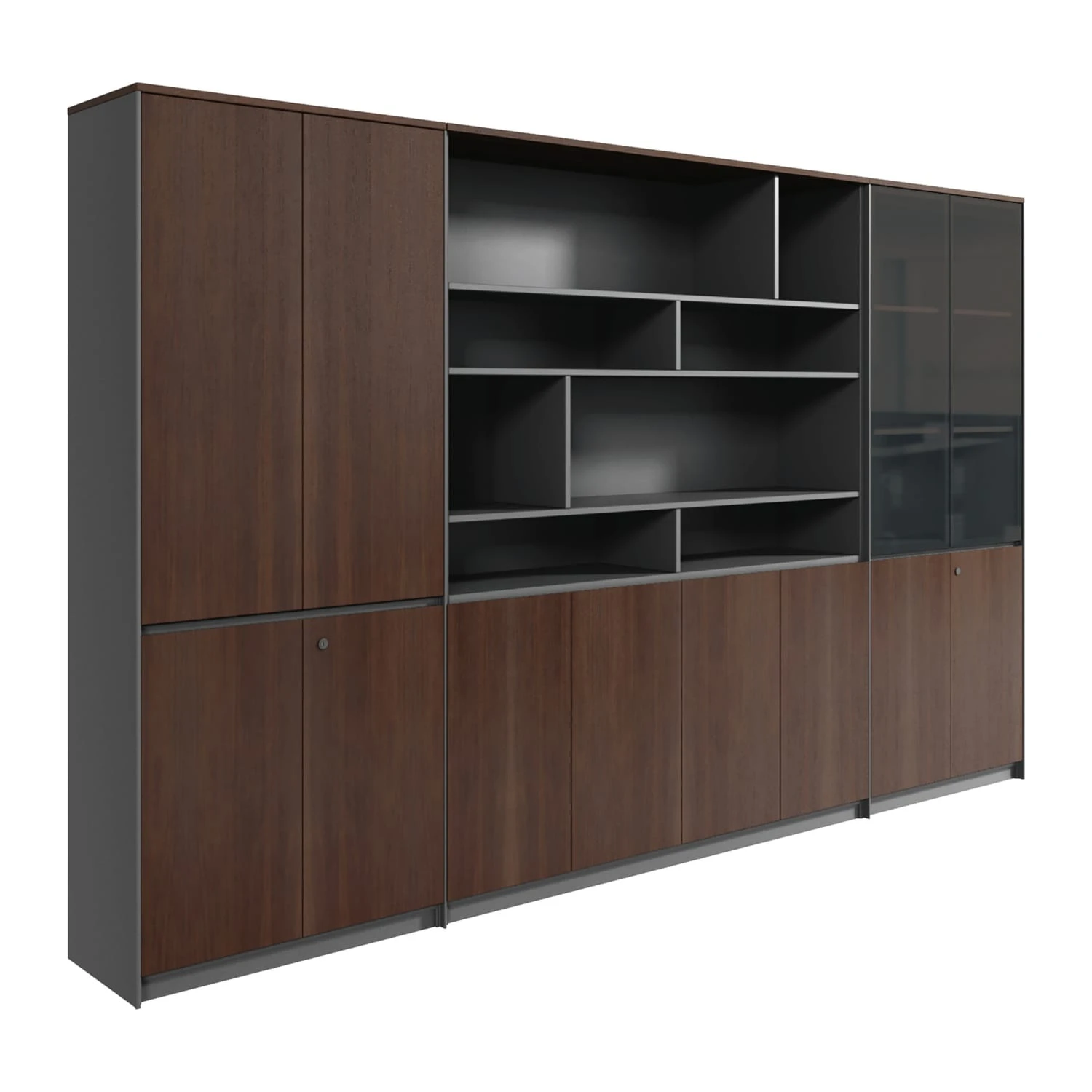 Двери - шпон; тонированное стекло в алюминиевой рамке