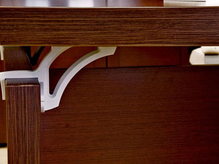 Стоит отметить качество фурнитуры, которая позволяет многократную сборку/разборку предметов. Это удобно при переезде, а также экономит место при хранении. Несомненным плюсом является возможность регулировки всех опор по высоте, каждый предмет будет надежно установлен даже при имеющихся неровностях пола.