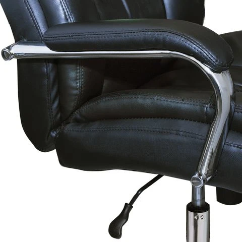 Представляем Вам модель повышенной комфортабельности — кресло Brabix Amadeus EX 507. И визуально, и при посадке в него создается ощущение абсолютной воздушности и уюта. Это достигнуто за счет усиленной набивки и качественной обтяжки из рециклированной кожи черного цвета. Этот недорогой материал, производимый из натуральной кожи, выглядит эффектно и имеет отличные тактильные качества.