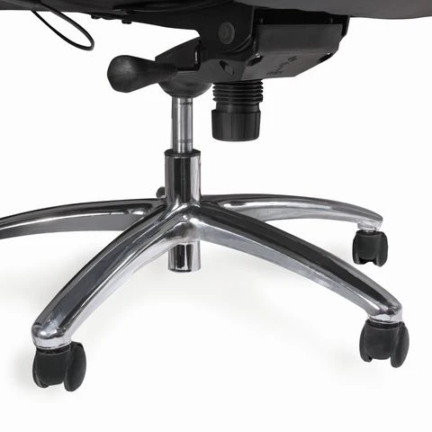 Надежность и устойчивость обеспечивает металлическая литая крестовина, ее ширина предотвращает опрокидывание при любом откидывании профиля, а пять роликов из нейлона позволяют перемещать по кабинету сидя, при этом не царапают пол. Стоит изучить и функциональность модели ФАЕТОН, встроенный мультиблок дает возможность свободно покачиваться при работе или в минуты отдыха, корпус фиксируется в верхнем рабочем положении. Жесткость качания легко регулируется специальным винтом, находящимся под подушкой. Также имеется стандартный газлифт, помогающий установить нужную высоту сиденья.