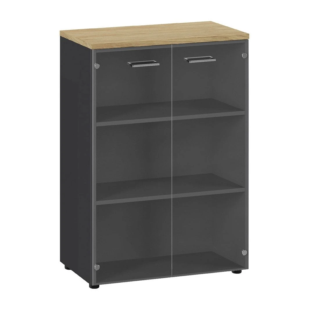Шкаф средний со стекл. дв. 80х42х112 Flex Гикори/Графит