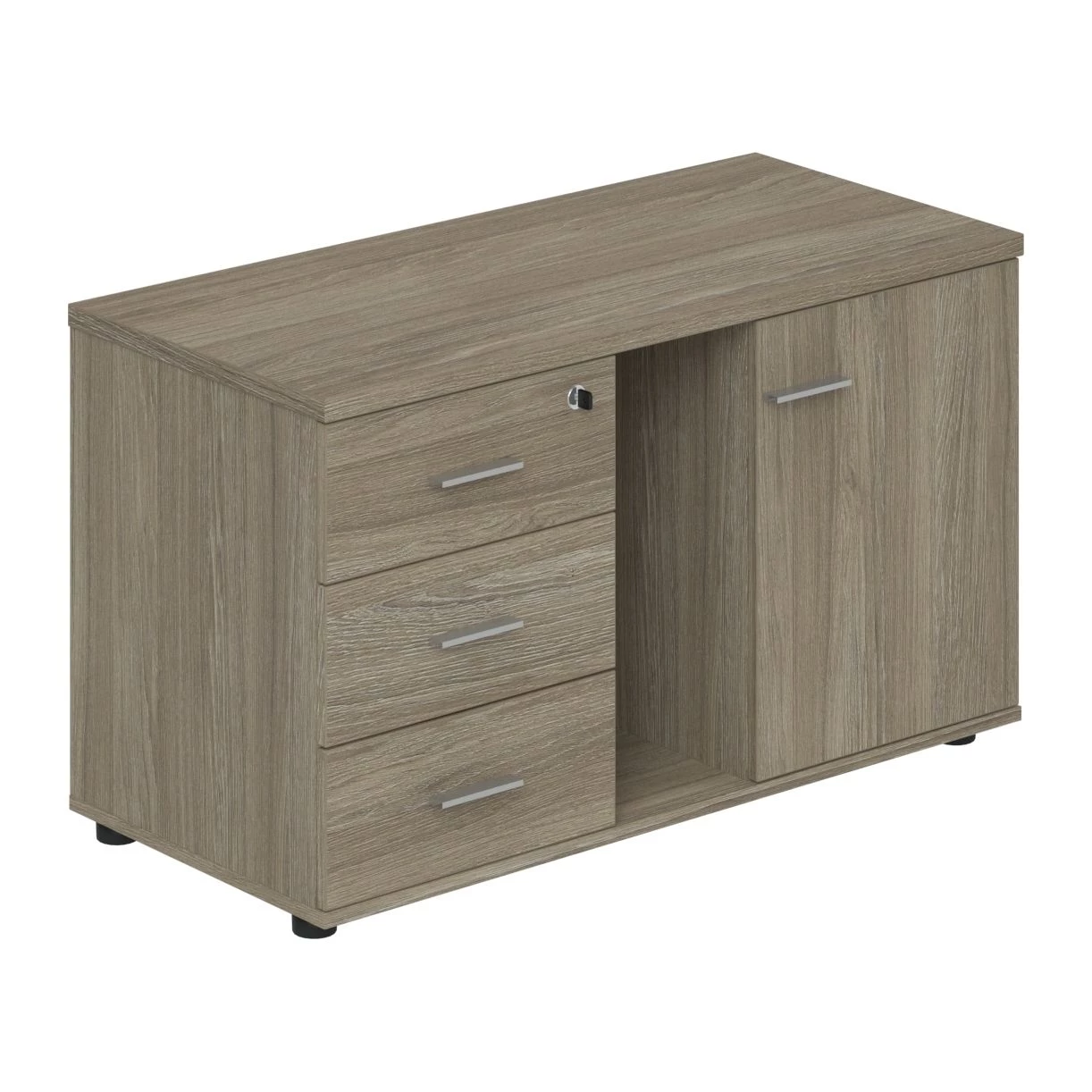 Тумба опорная (мобильная) с 3-мя ящиками + замок, распашным фасадом и нишей, левая Wing Дуб темный